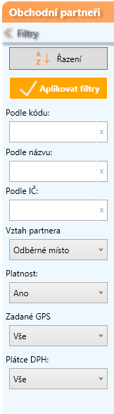 Pokud potřebujete větší plochu pro seznam, klikněte na šipku doleva v levém horním roku. Dojde k minimalizaci panelu filtrů.