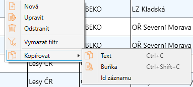 Id záznamu - zkopíruje pouze Id vybraného záznamu, ať již je zobrazené nebo ne. Vhodné například při reportování problému nebo při hledání konkrétního záznamu v jiné aplikaci.