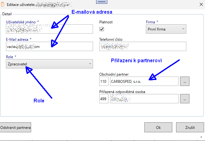 Zadat mu podle role příslušnou organizaci a připojit k osobě partnera.