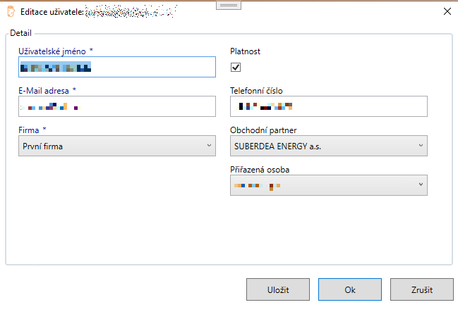 Obchodní partner označený jako "Moje firma" může být v databázi jen jeden. Z osob partnera se pak rekrutují odpovědné osoby pro výzvu a mapování uživatelů na odpovědné osoby. Toto mapování je důležité pro správnou funkci aplikaci a hlavně pro správné aplikování oprávnění a rolí jednotlivých uživatelů.