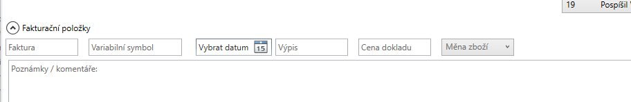 Volitelně Faktura a číslo výpisu z banky