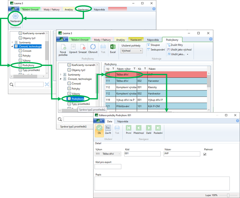 Podvýkony rozšiřují možnosti podrobnějšího sledování objemů a nákladů těžby ve výkonech.