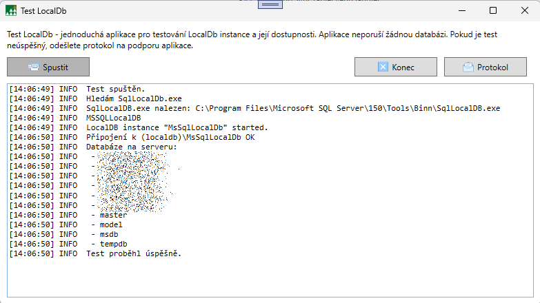 V menu start je aplikace LocalDbTest, spusťte ji