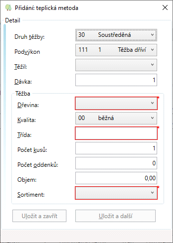- Sortiment. Automaticky se zapíše sortiment podle zadané dřeviny – jehličnaté, listnaté. V případě zadání dalších sortimentů (Nastavení sortimentů) se sortiment může změnit podle potřeby.