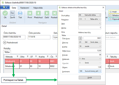 Ovládání a postupyTěžební činnostČíselníky těžbyČíselník položka Změna položky Změna položky těžby Pro změny položky platí stejná pravidla jako při zadávání nové položky - povinná pole, výběr hodnot atd.