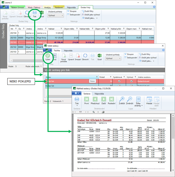 Sestava Dodací list