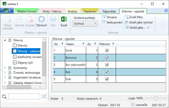 Nastavení vstupůDřeviny Krychlení Tabulky pro výpočet objemu m3 Tabulka krychlících objemových tabulek je pouze informační, nelze ji měnit.